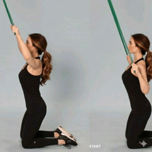 Loop a band around a pull-up bar or door anchor. Kneel or stand and pull your chest toward the anchor point.